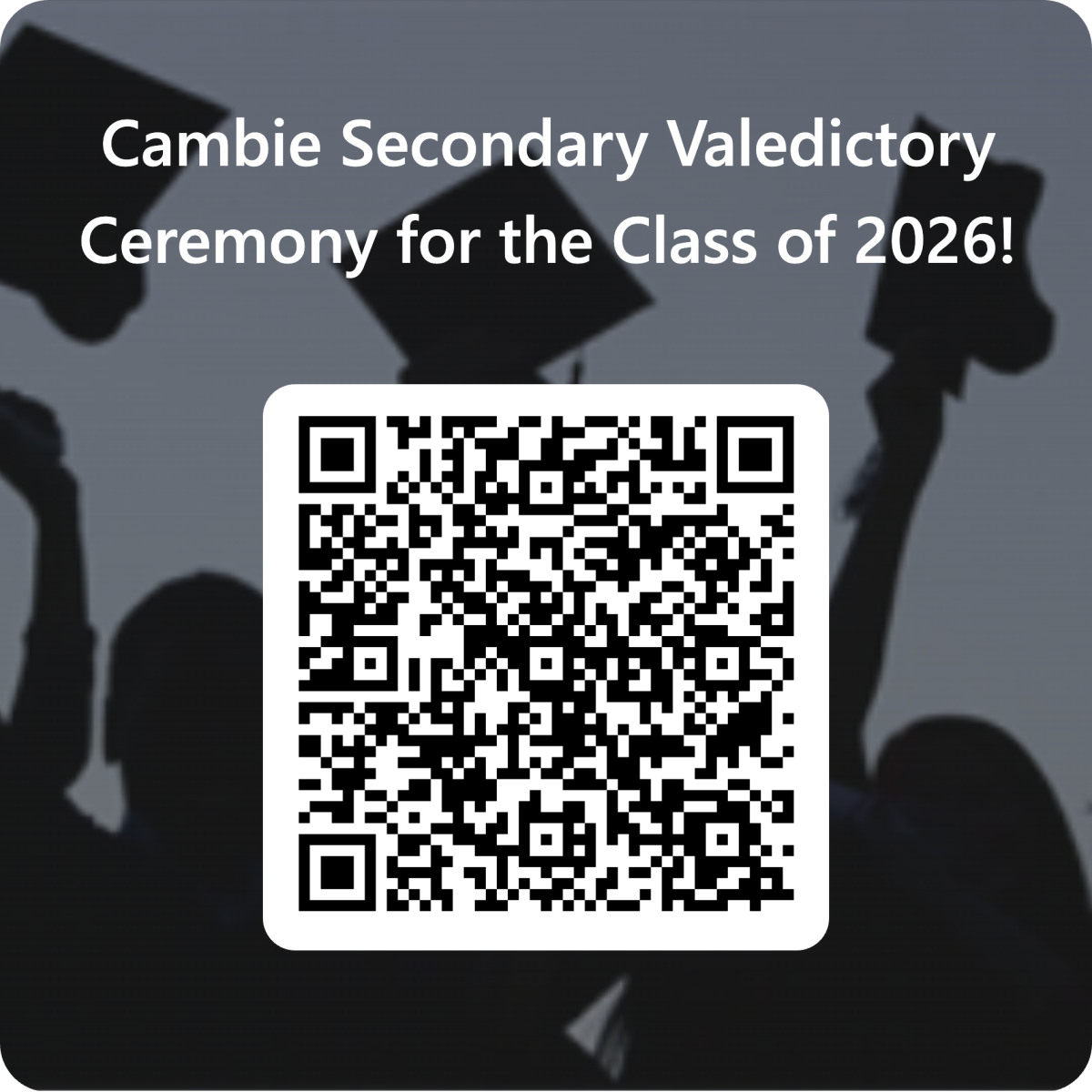 Planning for this year's Valedictory ceremony is already underway! The graduation ceremony for Cambie's class of 2026 begins at 7:00 pm on Friday, June 12th at the UBC Chan Centre for the Performing Arts.